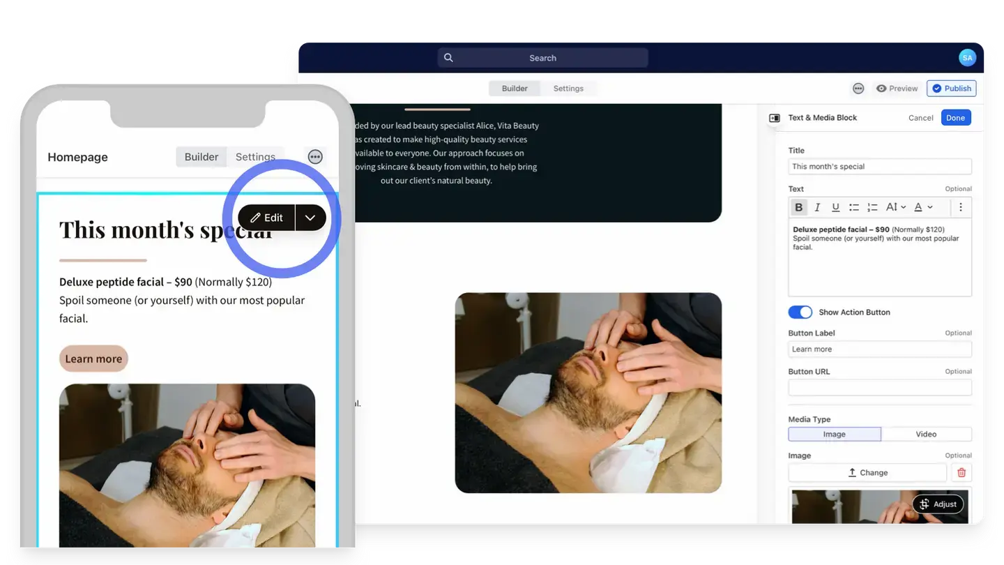 ✨ Tip: Use the Text and Media Block for most content on your page.