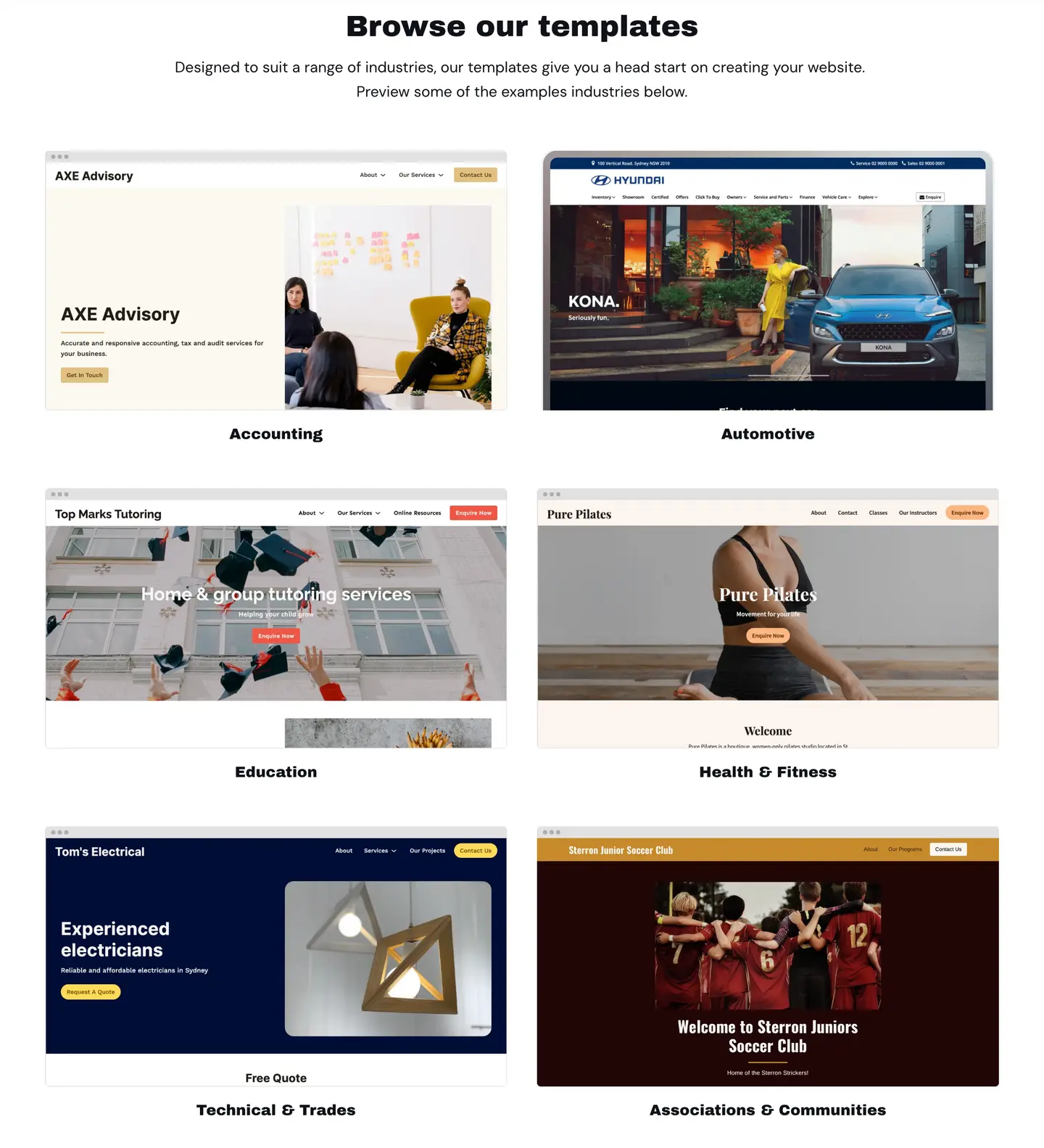 Our designers have created a range of templates for businesses of all sizes in different industries.